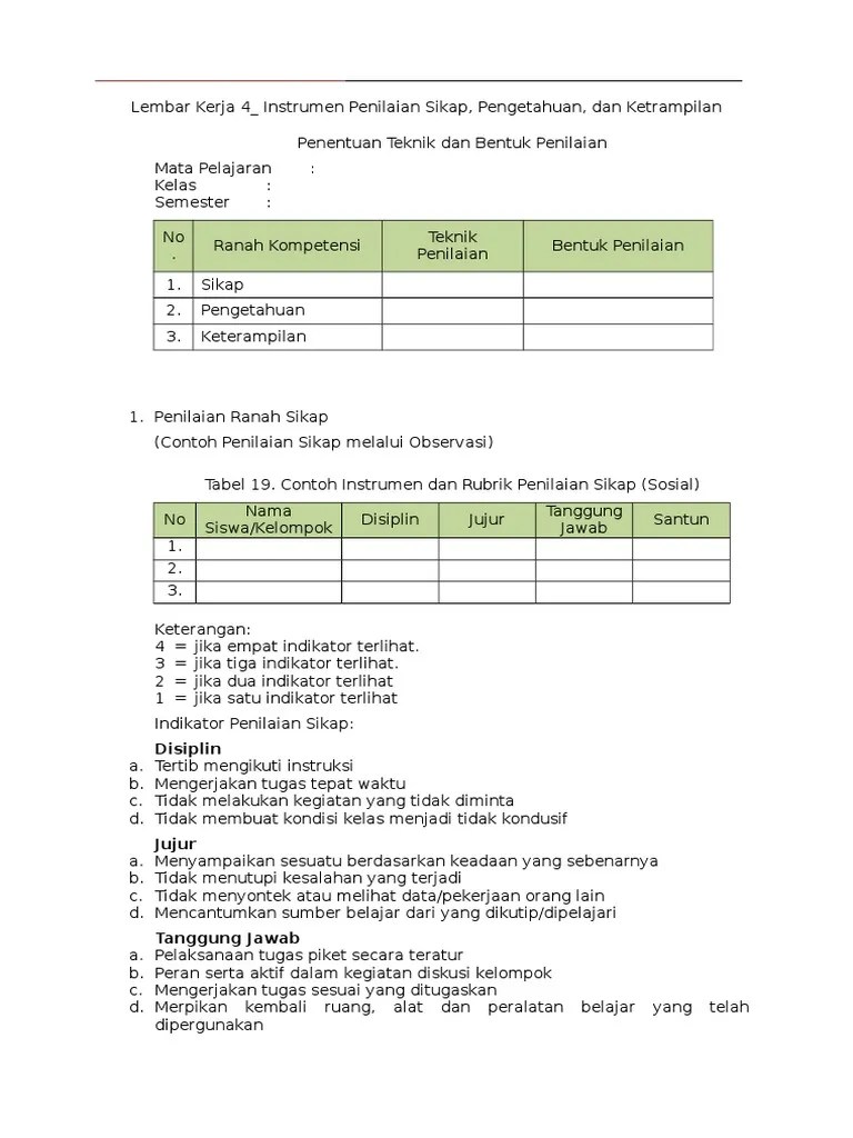 Lembaran ini diisi oleh guru untuk menilai sikap sosial peserta didik dalam kejujuran. Lembaran ini diisi oleh guru untuk menilai . Instrumen dan rubrik penilaian sikap no nama siswa/ kelompok disiplin jujur tanggung jawab. Teknik dan bentuk instrumen penilaian berdasarkan kurikulum 2013 a. Dikerjakan peserta didik dan kriteria penilaian (rubrik) untuk menilai.
